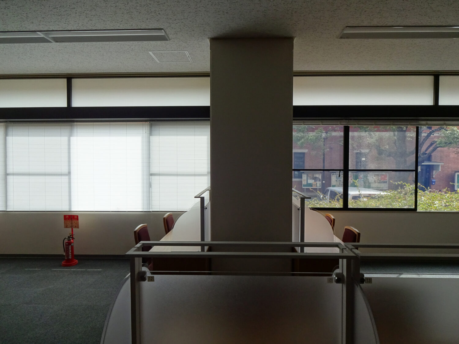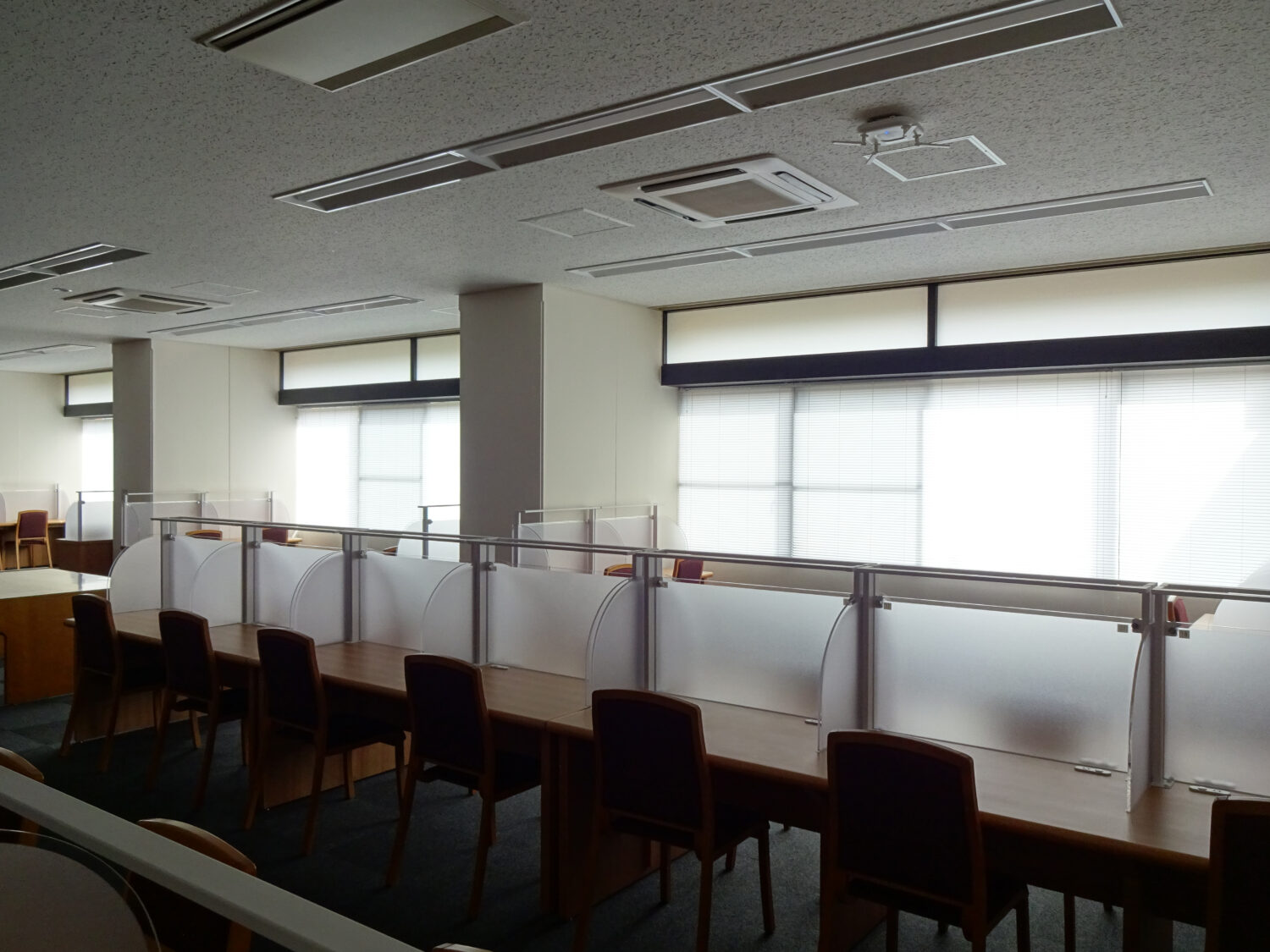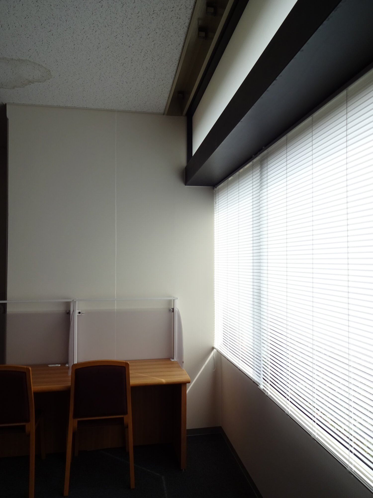 ブラインドのスラット(はね)を閉じても室内が明るく、外の様子が分からないことで学生の集中力アップが期待出来ます。