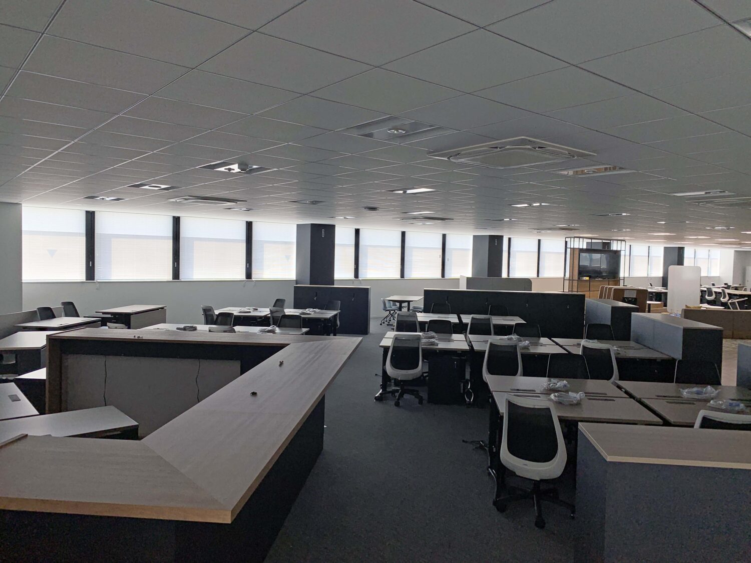 アカリナ ハイブリッドを中心に、入念な打ち合わせをさせていただきました。採光と遮熱を両立し、スッキリ快適なオフィスに生まれ変わりました。