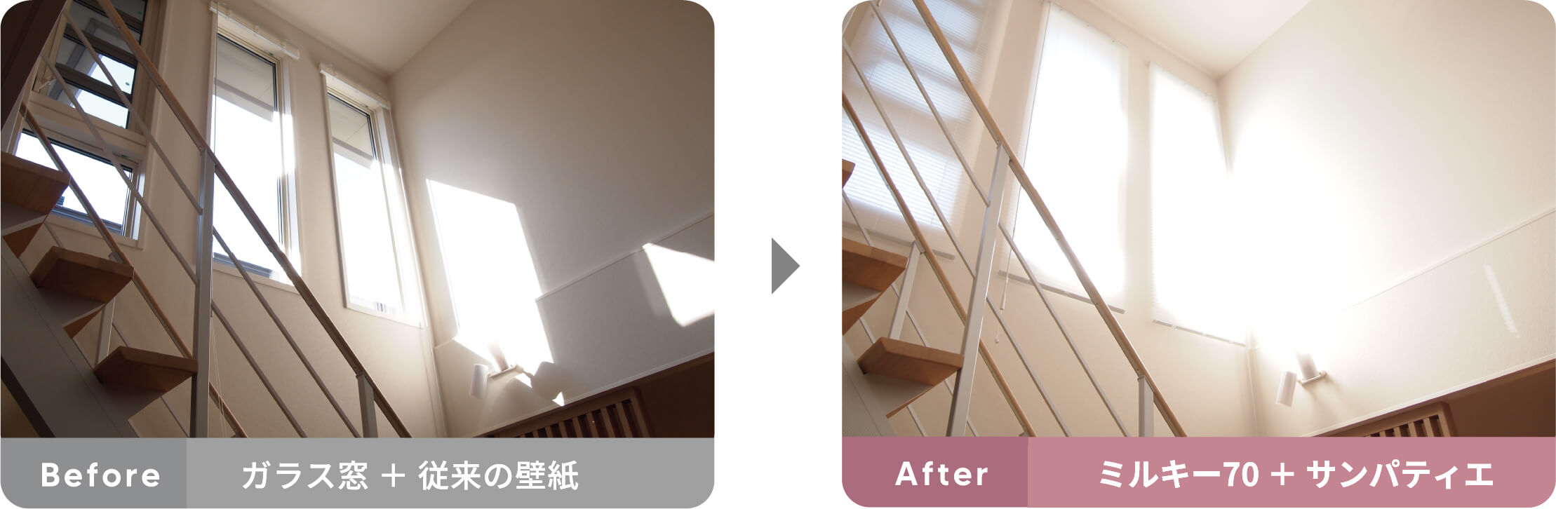サンパティエはクロス(壁紙)表面に特殊な加工を施し、光の反射効率を高めています。ギラギラ感の無い優しい光を乱反射させることで室内全体を明るくします。自然光やLED照明などの光源で、約20%*明るさがアップします。